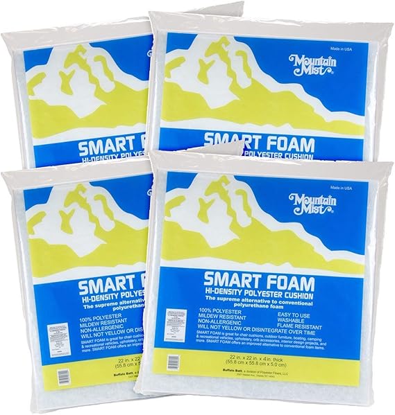 Amazon Com Mountain Mist Smart Foam High Densified 100 Percent Polyester Pad Cushion 22 Inches X 22 Inches X 4 Inches 4 Pack Or Upholstery Arts Crafts Sewing